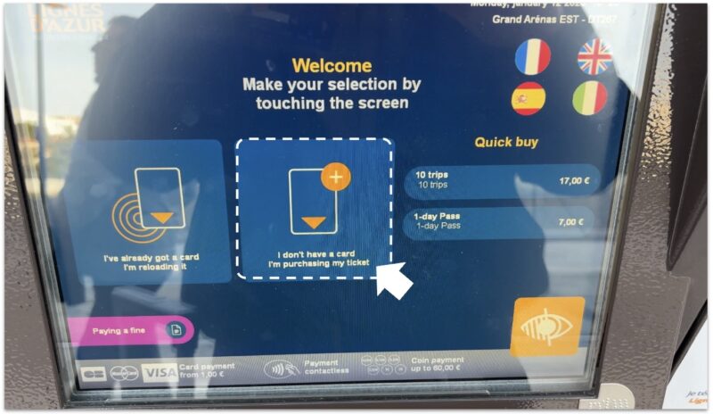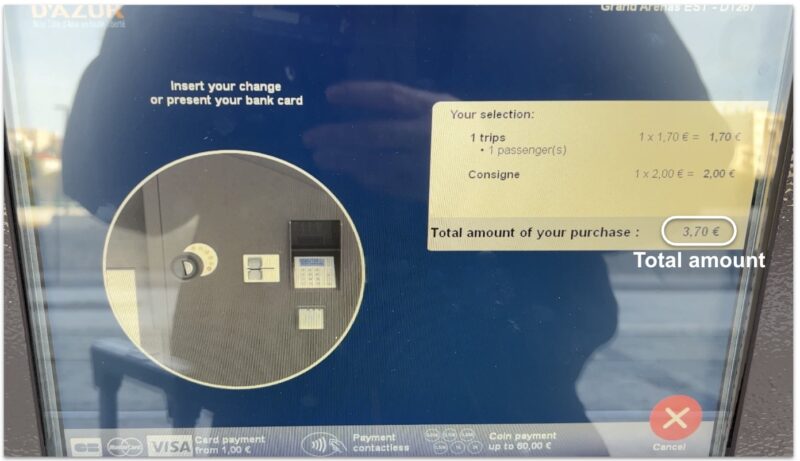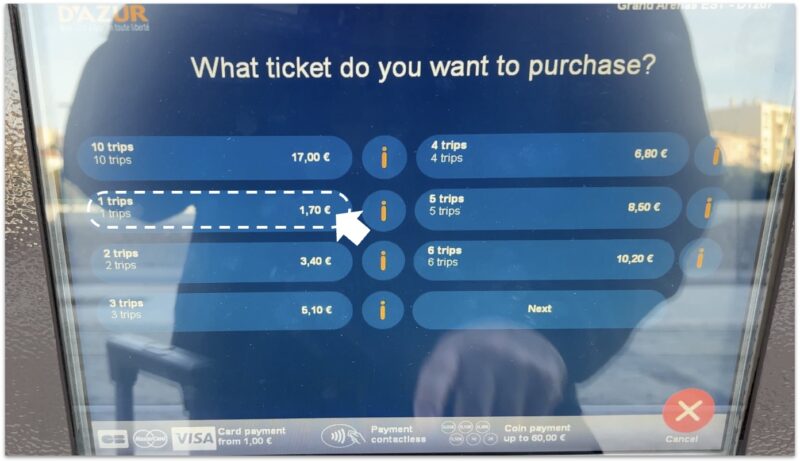 とりあえず、1.7€の一回券(1 trips)を購入してみましょう。