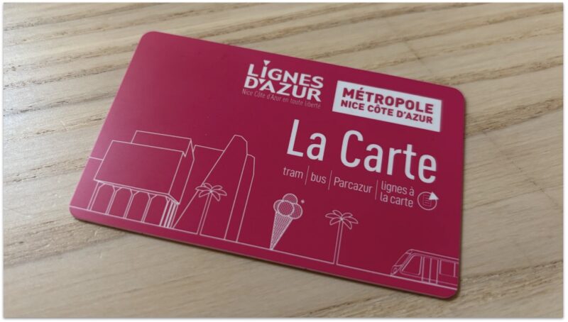 ニースでは紙の乗車券が廃止され、現在では『La Carte』と呼ばれるICカードに乗車賃をチャージしてトラム・バスに乗車します。