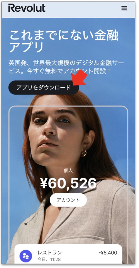 まず初めに、Revolutの公式サイトにアクセスし、専用アプリをスマホにインストールします。