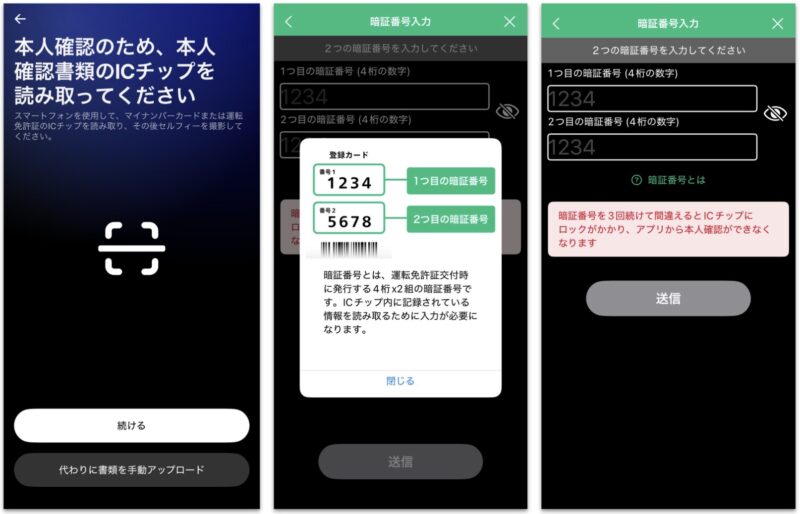 ただし、カメラを起動してICチップを読み取る場合、運転免許証の8桁の暗証番号が必要になります。