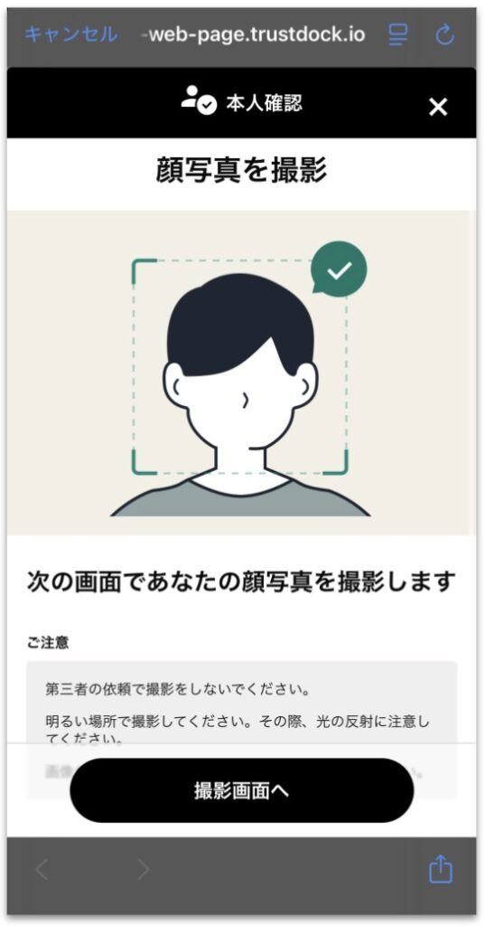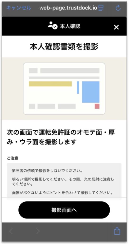続いて、画面の指示に従って、本人確認書類の表面と裏面を撮影します。