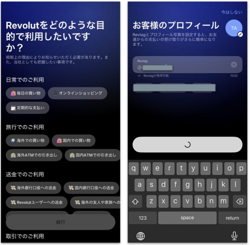 写真撮影後は、Revolutの利用目的とプロフィール名を設定します。