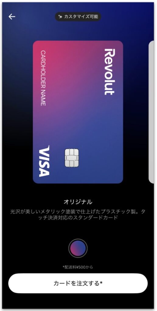 Revolutのリアルカードは、発行手数料無料ですが、配送手数料が通常500円、速達で2000円かかります。