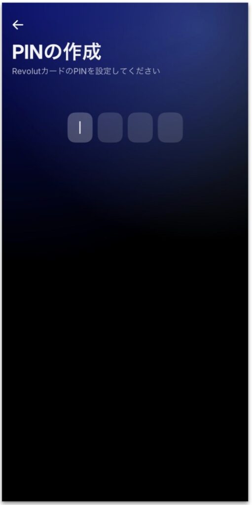 続いて、PINの作成を行います。Revolutカードを使ってATMキャッシングをする際に必要となる暗証番号の設定です。