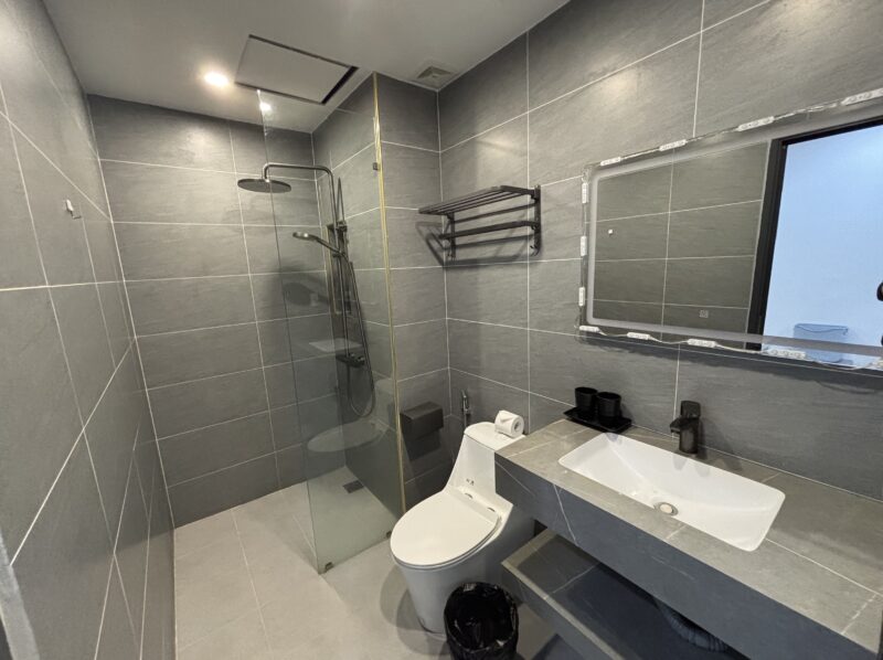シャワールームの排水口がやや詰まりやすく、数分使うと床に少し水が溜まることがありました。ただ、完全に流れなくなるわけではなく、しばらくすると自然に引いていく程度です。
