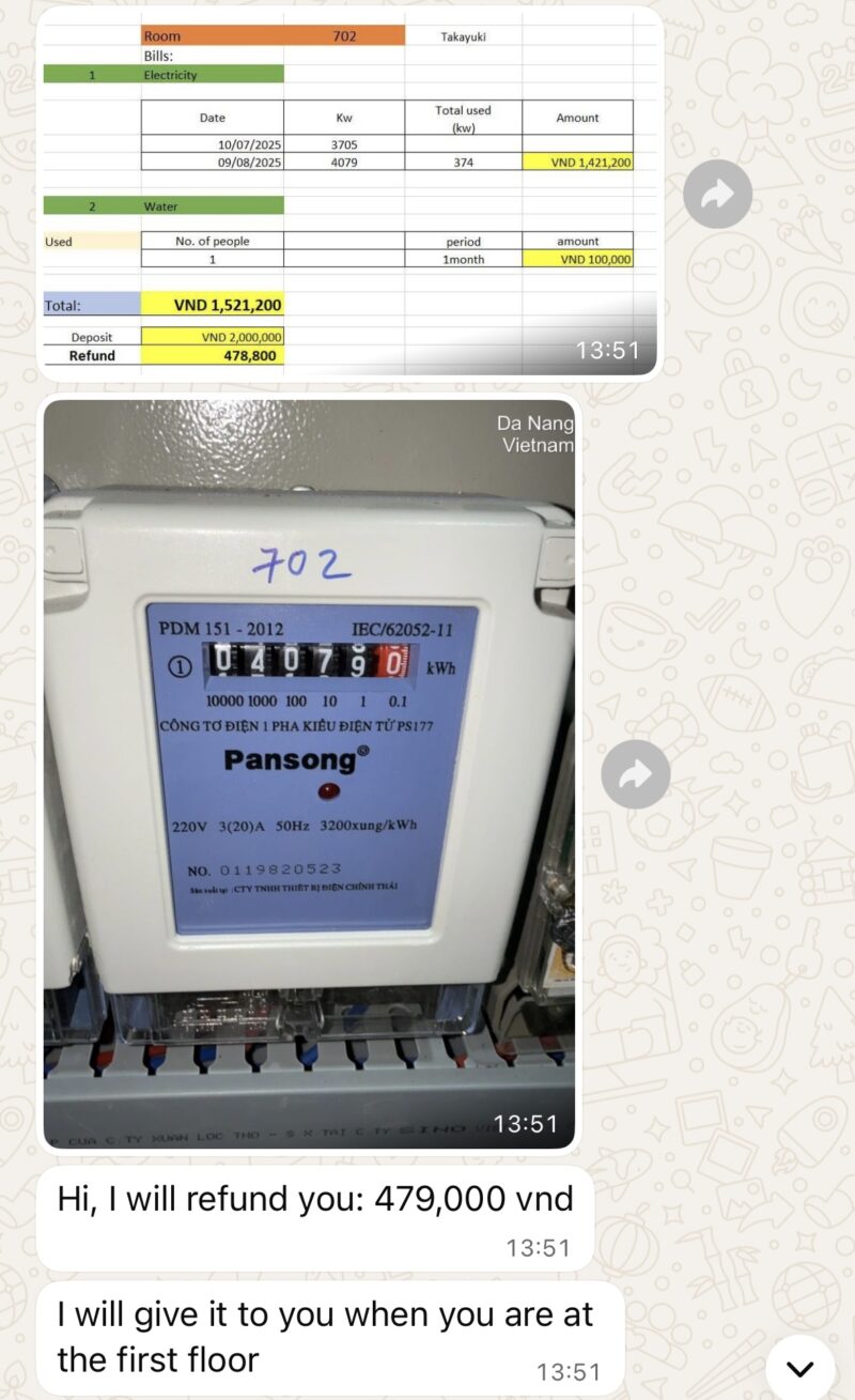 479,000VND(約2800円)が返ってきただけでもラッキーと思うことにしました。